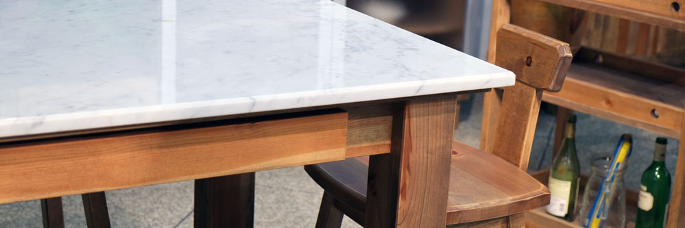 イタリア産の良質な天然大理石ビアンコカラーラを使った、経年変化を楽しむこだわりのテーブルです。細かなサイズオーダーや石種、樹種の変更も承っております。
