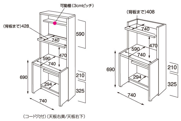 ▲左)高さ180cmタイプ、右)高さ125cmタイプ