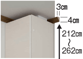▲厚み3cm高さ4cm以内の廻り縁なら、廻り縁をさけて設置することができます。その場合の天井とのすきまは廻り縁の高さプラス約1cm程度となります。