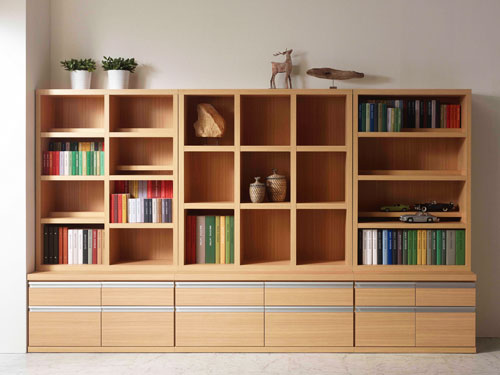 普段使わないものや書類の束などは、幕板のある最下段に収納すると見た目もスッキリします。 また、辞書や家庭の医学、参考書などは最下段に収納と予め物の居場所を決めおきすることも、棚やお部屋の整理収納において大切です。