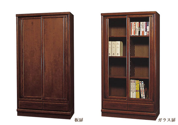 書棚の扉は板扉とガラス扉の2種類から選んでいただけます。※どちらの扉を選んでも同価格です。ご指定無しの場合は全てガラス扉になります。