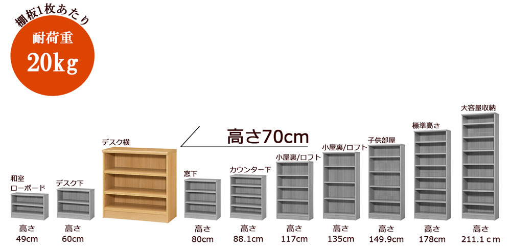 こちらは本体ラック高さ70cmの商品ページです。